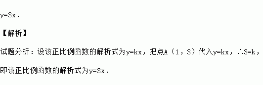 如图,正比例函数图象经过点A,该函数解析式是 .