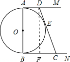 .分析:根据切线的性质得到它们都和直径垂直,得到AM与NB平行,作直角梯形的另一高,构造一个直角三角形,根据切线长定理和勾股定理列方程,再表示出关于y的函数关系式;根据直角梯形的面积公式表示梯形的面积,再根据基本不等式即可求出S的范围.