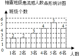 分析 (1)根据患流感人数有6名的班级有4个,占20%,可求得抽查的班级数,再减去其它班级数,即可补全统计图;