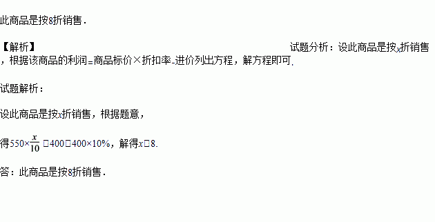 某商品的进价是400元,标价为550元,打折销售时利润率为10%,则此商品是按几折销售?