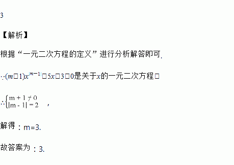 若(m+1)x|m-1|+5x-3=0是关于x的一元二次方程,则m的值为________.