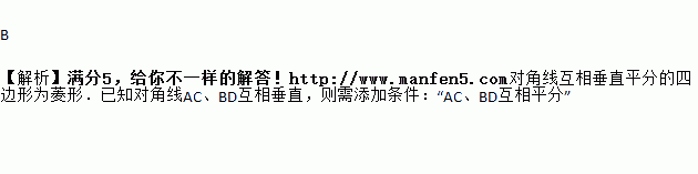 如图2,四边形ABCD的对角线AC、BD互相垂直,则下列条件能判定四边形ABCD为菱形的是( )