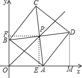 分析:(1)作DM⊥x轴于点M,由A(4,0)可以得出OA=4,由勾股定理就可以求出OB=3,再通过证明△AOB≌△DMA就可以求出AM=OB,DM=OA,从而求出点D的坐标.