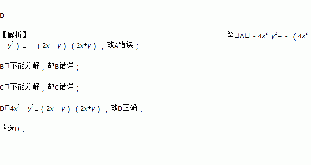 分解因式的结果是(2x-y)(2x+y)的是 ( )