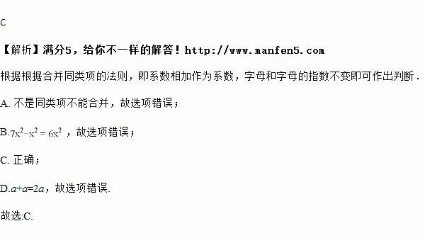 A. 2a+3b=5ab B. 7x2﹣x2=7 C. 3mn﹣3mn=0 D. a+a=a2