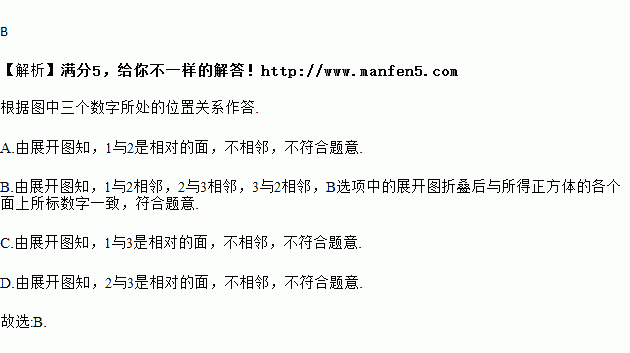 下列四个图形折叠后与所得的正方体的各个面上所标数字一致的是( )