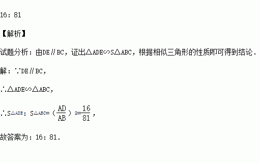 如图,在△ABC中,D、E分别是AB、AC上的点,且DE∥BC,若AD:AB=4:9,则S△ADE:S△ABC= .