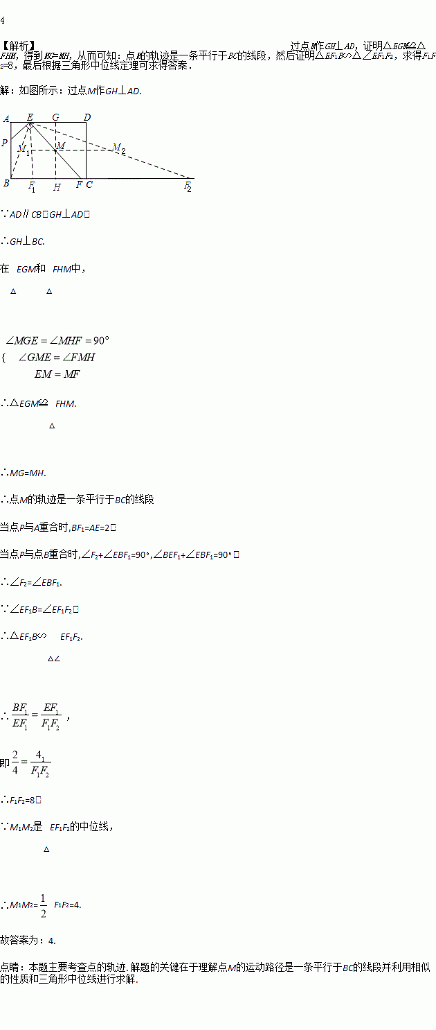 如图,矩形ABCD中,AB=6,AD=8,点E在边AD上,且AE:ED=1:3.动点P从点A出发,沿AB 运动到点B停止.过点E作EF⊥PE交射线BC于点F,设M是线段EF的中点,则在点P运动的整个过程中,点M运动路线的长为______.