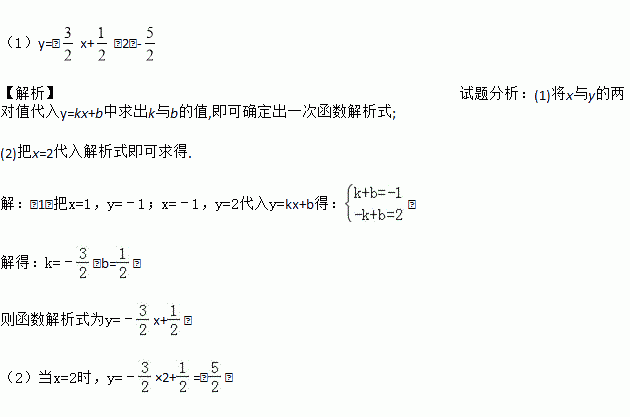 在一次函数y=kx+b中,当x=1时,y=﹣1;当x=﹣1时,y=2.