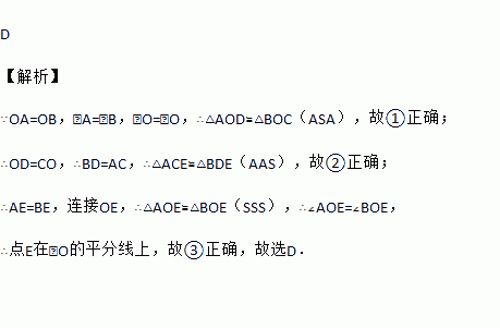 ①△AOD≌△BOC;②△ACE≌△BDE;③点E在∠O的平分线上;