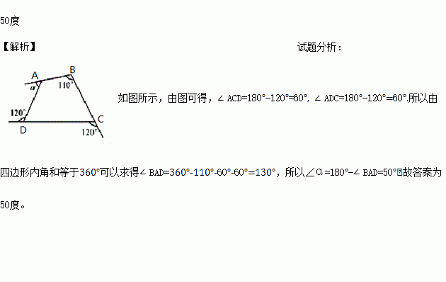 根据如图所示的已知角的度数,求出其中∠α的度数为______.