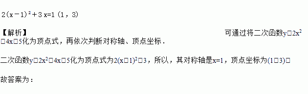 二次函数y=2x2-4x+5通过配方化为顶点式为y=____,其对称轴是_____,顶点坐标为_____.
