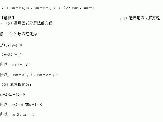 (1).解方程: x2+6x-1=0