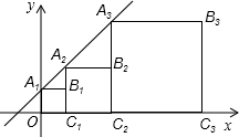 正方形A1B1C1O,A2B2C2C1,A3B3C3C2,…按如图所示的方式放置.点A1,A2,A3,…和点C1,C2,C3,…分别在直线y=kx+b(k>0)和x轴上,已知点B1(1,1),B2(3,2).