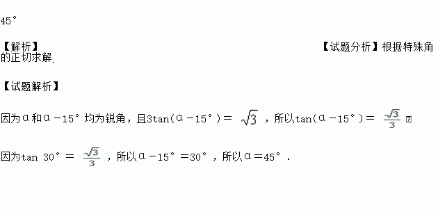 已知α和α-15°均为锐角,且3tan(α-15°)=,求α的值.