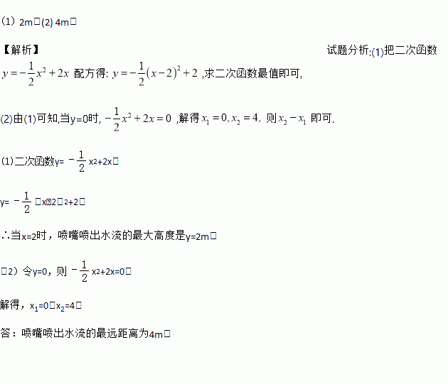 某广场喷泉的喷嘴安装在平地上.有一喷嘴喷出的水流呈抛物线状,喷出的水流高度y(m)与喷出水流喷嘴的水平距离x(m)之间满足