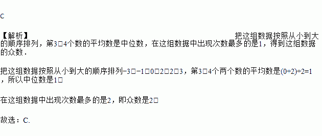 一组数据:2,-1,0,3,-3,2.则这组数据的中位数和众数分别是( )