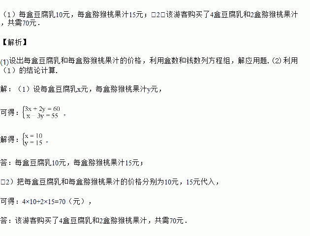 (2)该游客购买了4盒豆腐乳和2盒猕猴桃果汁,共需多少元?