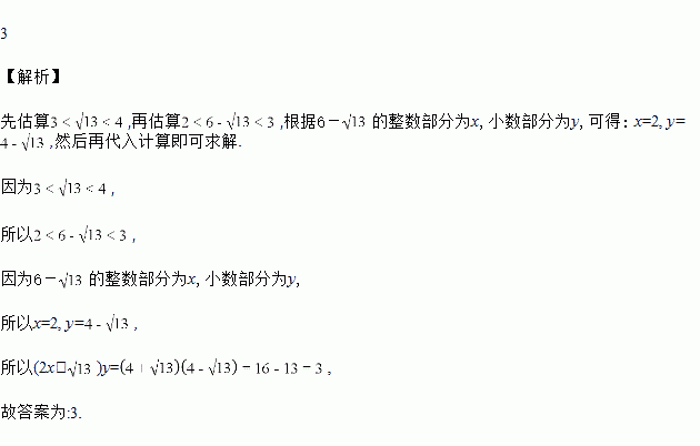 若6-的整数部分为x,小数部分为y,则(2x+)y的值是___.