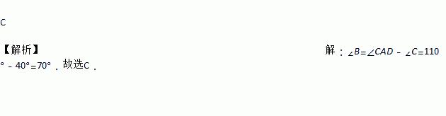 如图,△ABC中,∠C=40°,点D在BA的延长线上,∠CAD=110°,则∠B的度数为( )