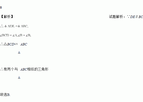 如图,△ABC中,∠BCD=∠A,DE∥BC,与△ABC相似的三角形(△ABC自身除外)的个数是( )