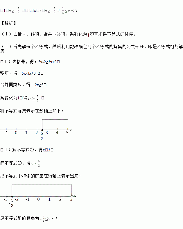 (Ⅰ)解不等式5x﹣2≥3(x+1),并把它的解集在数轴上表示出来.