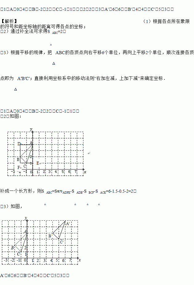 (1)请写出A、B、C三点的坐标;