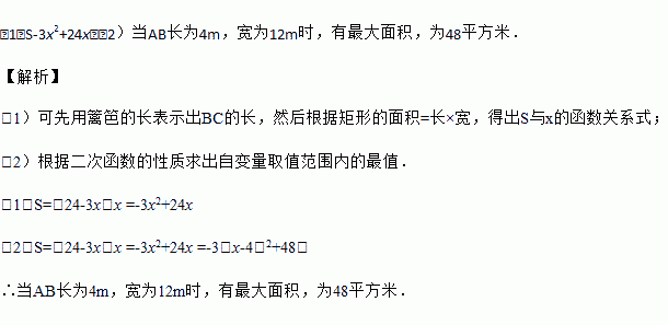 (2)如果要使围成花圃面积最大,求AB的长为多少米?