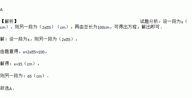 把一根长100cm的木棍锯成两段,使其中一段的长比另一段的2倍少5cm,则锯出的木棍的长不可能为( )
