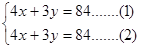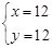 因方程(1)与(2)相同,所以此方程组为不定方程,有无数个解,当x=12时,y=12.