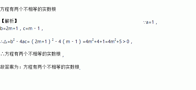 一元二次方程x2+(2m+1)x+(m﹣1)=0的根的情况是_____.