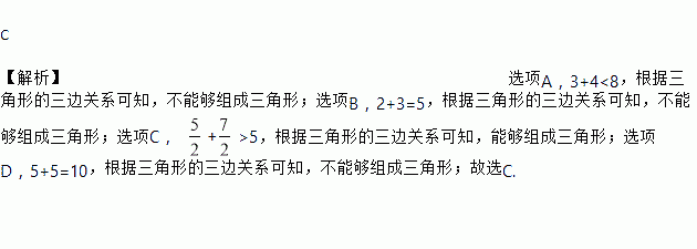 A. 3,4,8 B. 2,5,3 C. , ,5 D. 5,5,10