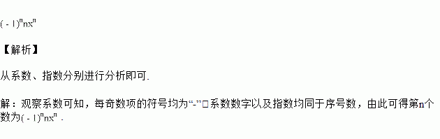 一列式子:-x,2x2,-3x3,…,-9x9,10x10,……,按照这列数排列规律,你认为第n个数为______