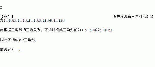 四条线段的长分别是5cm,6cm,8cm,13cm,以其中任意三条线段为边可以构成______个三角形.