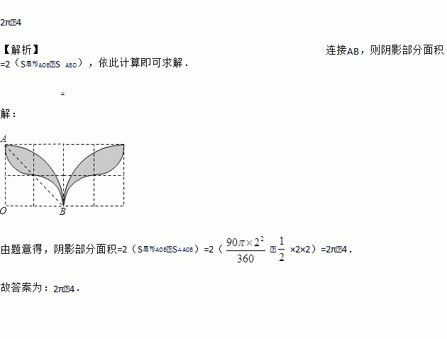 如图,小方格都是边长为1的正方形,则以格点为圆心,半径为1和2的两种弧围成的“叶状”阴影图案的面积为 .