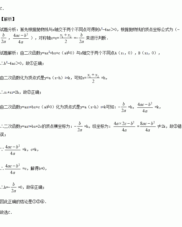 若二次函数y=ax2+bx+c(a≠0)与x轴交于两个不同点A(x1,0),B(x2,0);且二次函数化为顶点式是y=a(x-h)2+k,则下列说法: