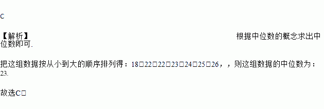 “魅力凉都”六盘水某周连续7天的最高气温(单位℃)是18,22,22,23,24,25,26,则这组数据的中位数是( )