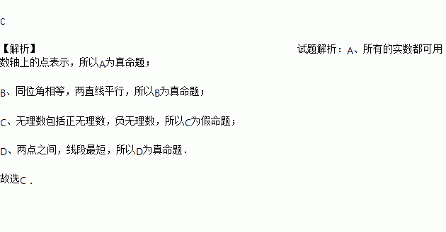 A. 所有的实数都可用数轴上的点表示; B. 同位角相等,两直线平行;
