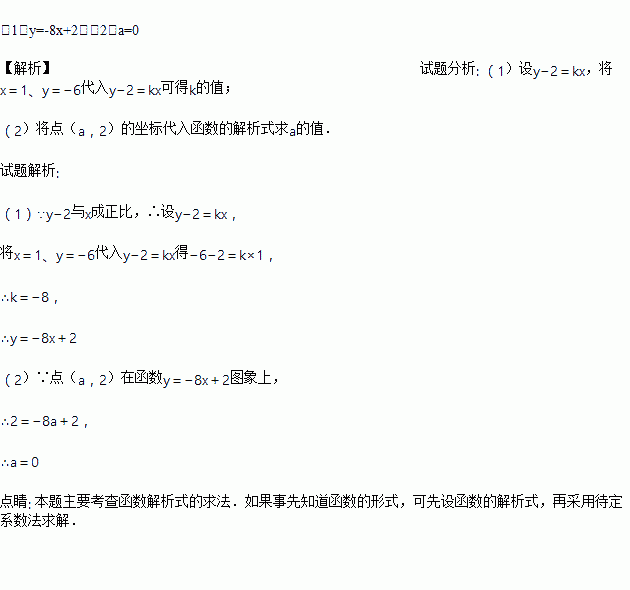 (2)若点(a,2)在这个函数图象上,求a.