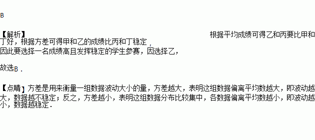 某校要从四名学生中选拔一名参加市“风华小主播”大赛,将多轮选拔赛的成绩的数据进行分析得到每名学生的平均成绩x及其方差s2如下表所示,如果要选择一名成绩高且发挥稳定的学生参赛,那么应选择的学生是( )