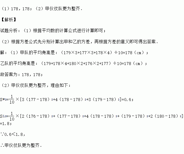 (2015秋•惠山区期末)甲、乙两支仪仗队各10名队员的身高(单位:cm)如下表: