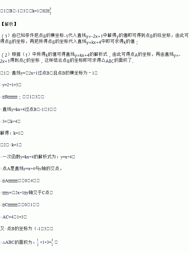 (2)直线y=﹣2x+1与直线y=kx+4与y轴所围成的△ABC的面积.
