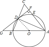 如图,在△ABC中,AB=AC,以AB边的中点O为圆心,线段OA的长为半径作圆,分别交BC、AC边于点D、E,DF⊥AC于点F,延长FD交AB延长线于点G.