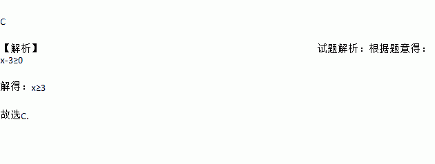 A. x>0 B. x>3 C. x≥3 D. x≤3