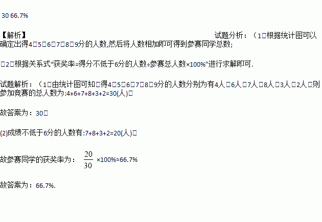 (2)若成绩在6分以上的(含6分)的同学获奖,则该校参赛同学的获奖率为________.