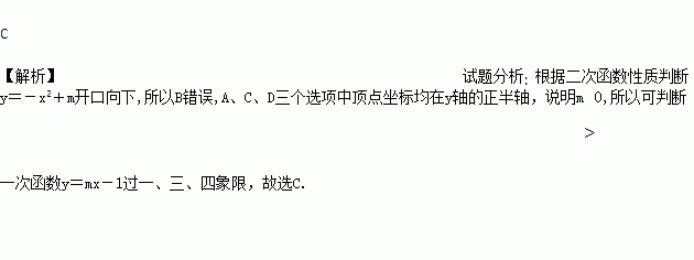 在同一直角坐标系中,二次函数y=﹣x2+m与一次函数y=mx﹣1(m≠0)的图象可能是( )
