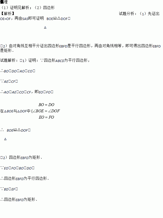 (2)若BD=EF,连接DE、BF,判断四边形EBFD的形状,并说明理由.
