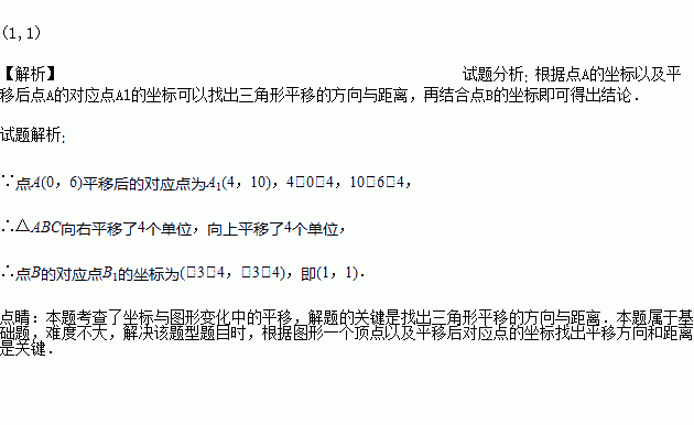 已知△ABC的顶点坐标分别是A(0,6),B(-3,-3),C(1,0),将△ABC平移后顶点A的对应点A1的坐标是(4,10),求点B的对应点B1的坐标.