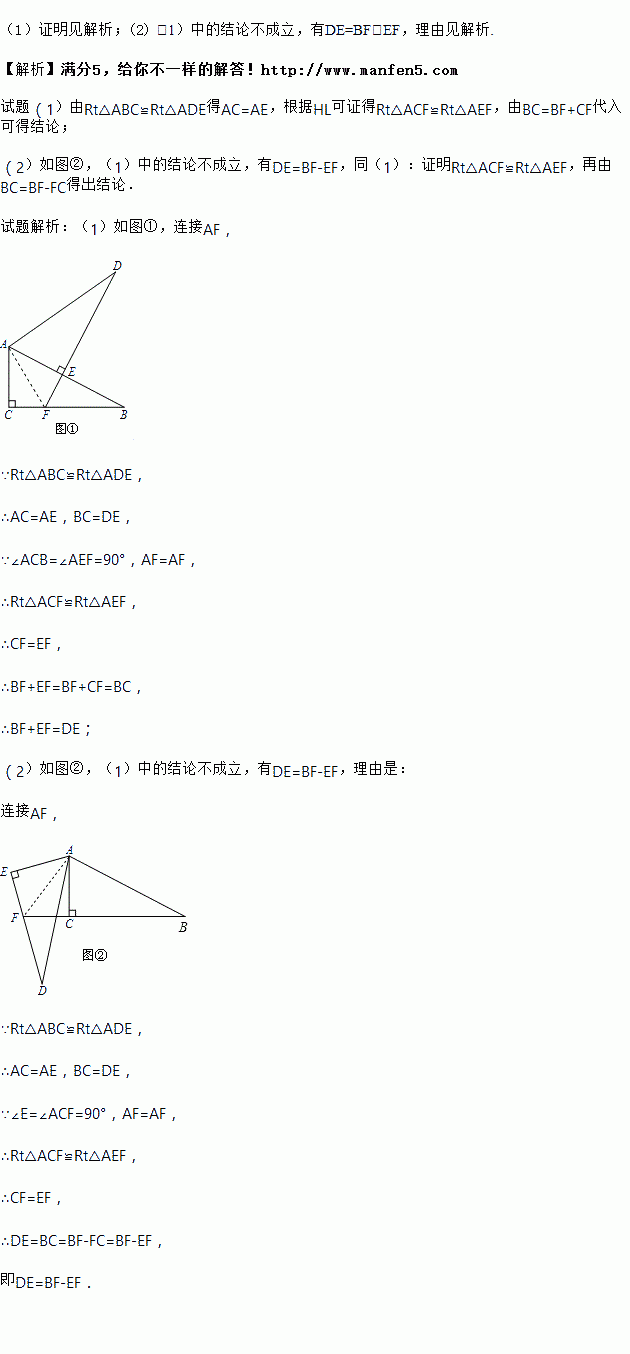 中的结论还成立吗?若成立,加以证明;若不成立,写出此时BF、EF与DE之间的等量关系,并说明理由.![]()