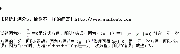 A.3x-=0 B.x(x-1)=1